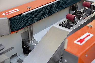 7、下部的膠帶作業(yè),在側面輸送帶驅(qū)動下通過機器,有膠帶分割器迅速簡便地貼上膠帶。